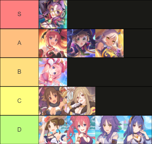 基本おっぱいだけど実はアユミかなり好きです。地味目だけど胸しっかりある子めちゃ好き。巨乳枠ならミソラ、ユイ、ペコ、イオ、シズル、エリコ辺り人気だけど全然そそらないです。"狙ってる感じ"がダメなのかもしれない…。ナナカ、アキノの位置は初期からブレず。ネアはプレイアブル参戦で食いこんできたキャラです。10代最胸は強い。C~D枠は特別推しではないけど、入れてもいいなというキャラを入れました。